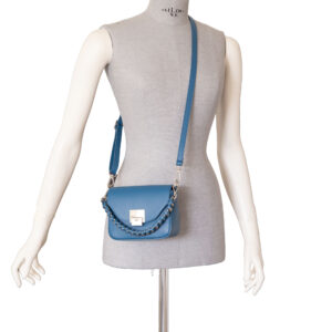 – top flap with chromed metal buckle with logo