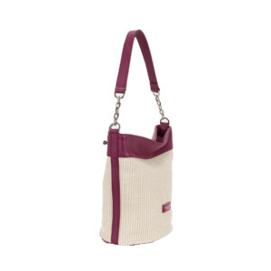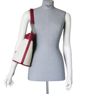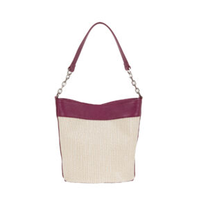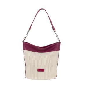 Secchiello in pelle e tessuto intrecciato P24072 da donna