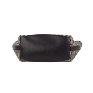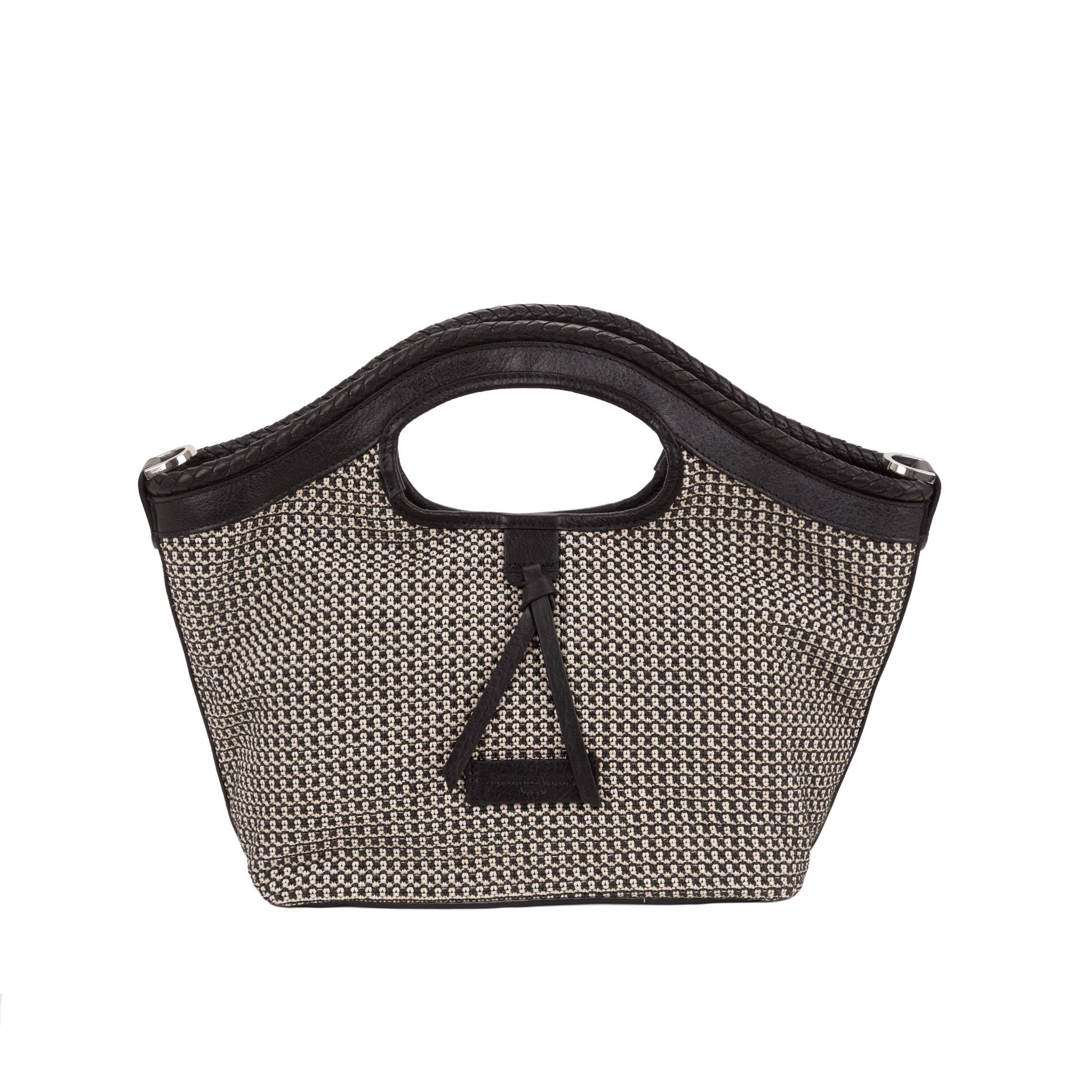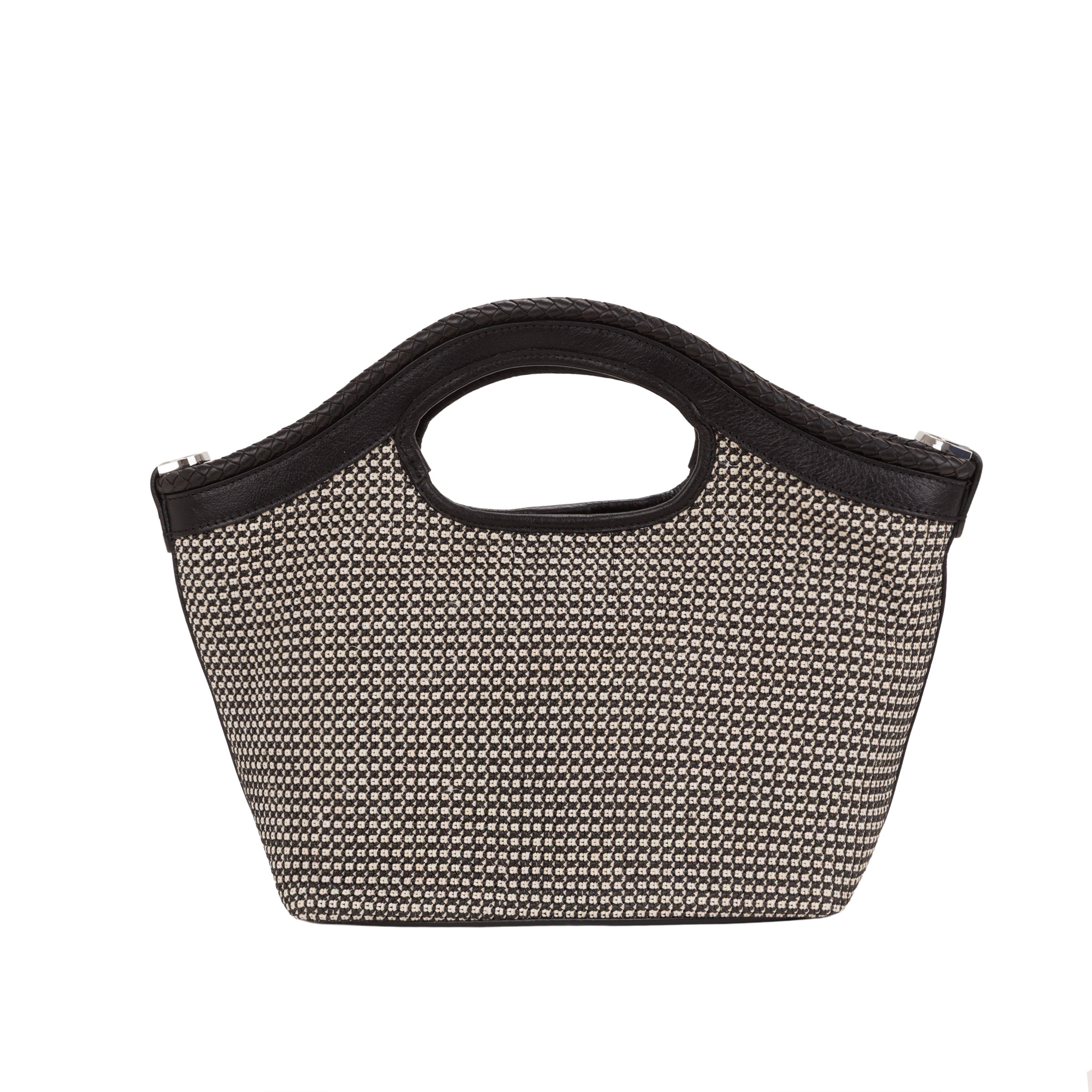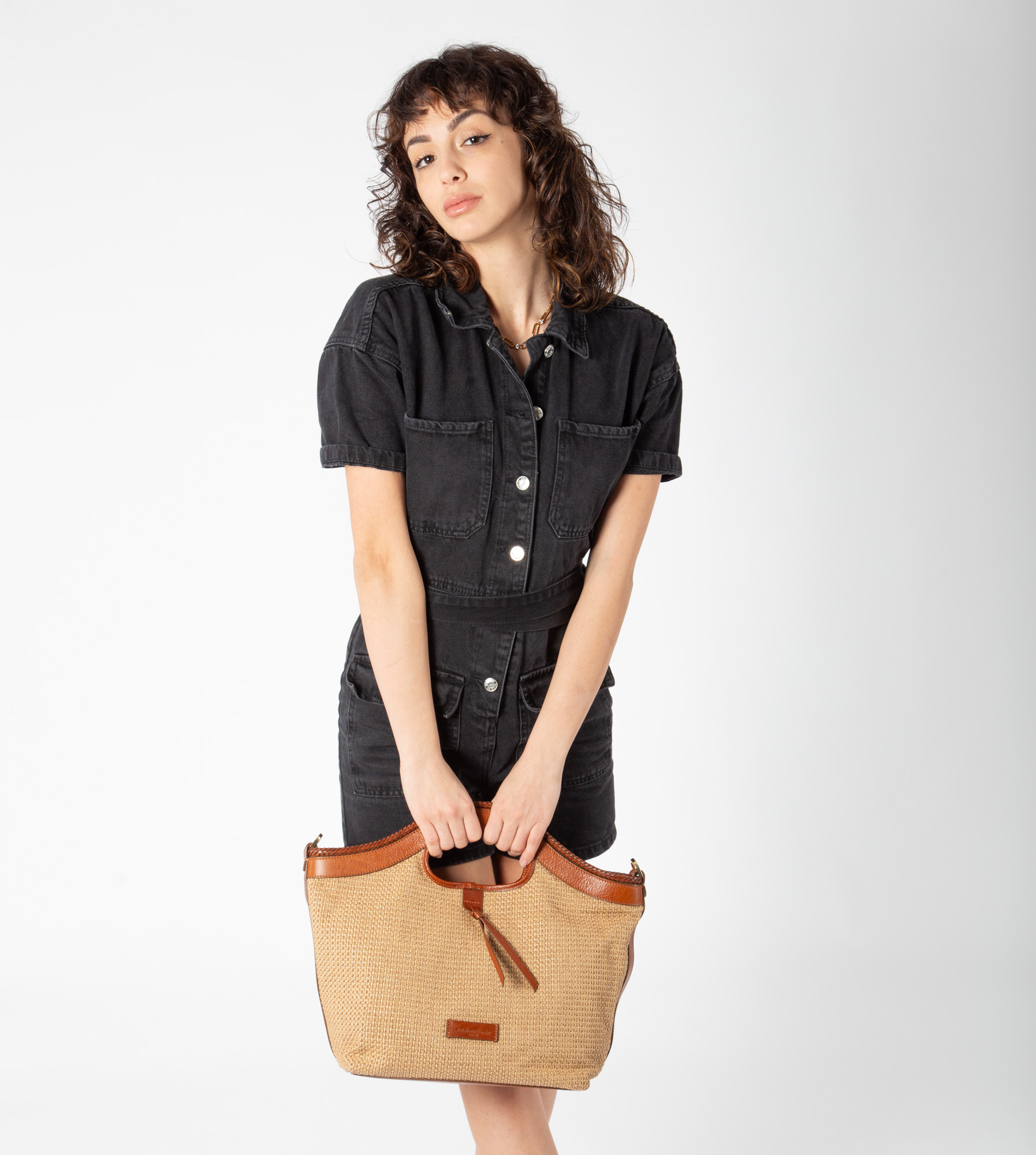 Borsa Media a mano in paglia intrecciata con dettagli in pelle vacchetta