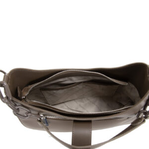 Questa borsa è un’ottima scelta per chi cerca un’alternativa elegante e funzionale alle borse a mano. La borsa è realizzata in pelle di alta qualità e misura 35x26x11 cm, il che la rende abbastanza spaziosa da contenere tutti i tuoi oggetti. La borsa ha uno spallaccio singolo in pelle e catena in metallo verniciato tono su tono, che la rende comoda da indossare sulla spalla. La fibbia in metallo cromato e il logo aggiungono un tocco elegante alla borsa. La chiusura con zip garantisce la sicurezza dei tuoi oggetti personali, mentre la tasca esterna posteriore ti consente di accedere facilmente ai tuoi effetti personali. La fodera in tessuto con tasche e zip ti consente di organizzare i tuoi oggetti personali in modo efficiente. Questa borsa è stata fatta in Italia.